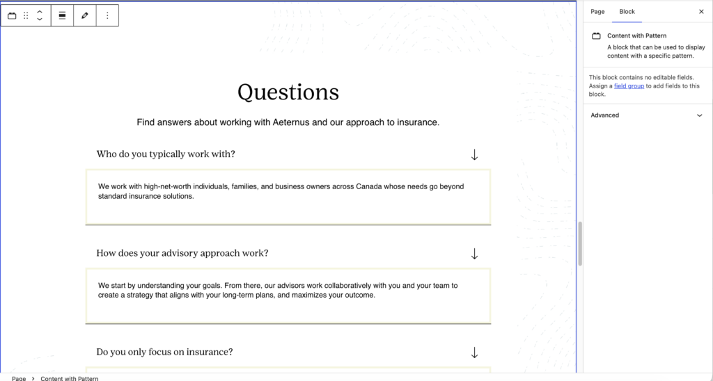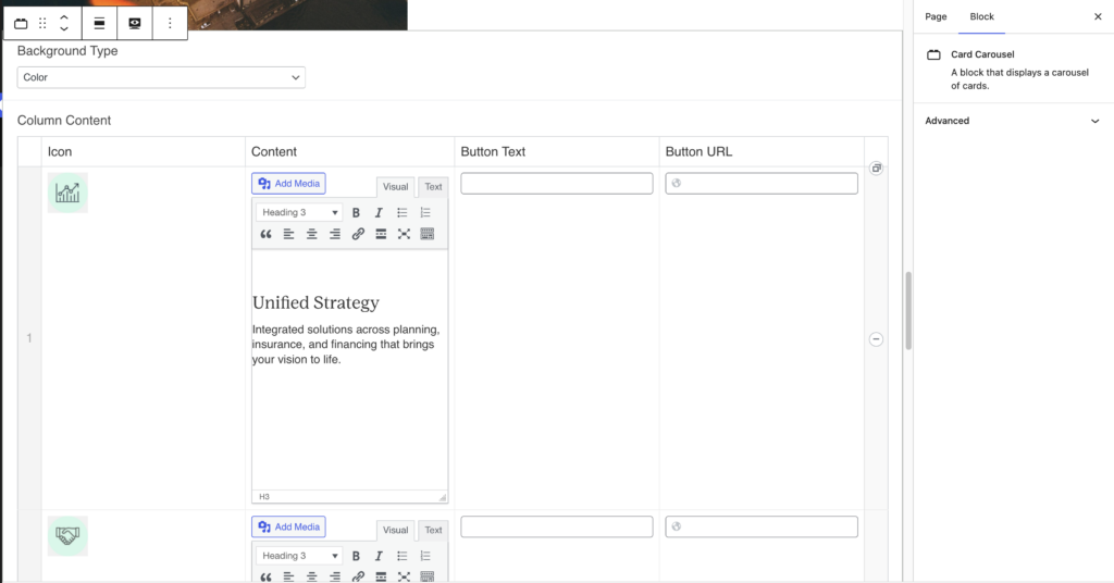This block has no special fields. Just add content.