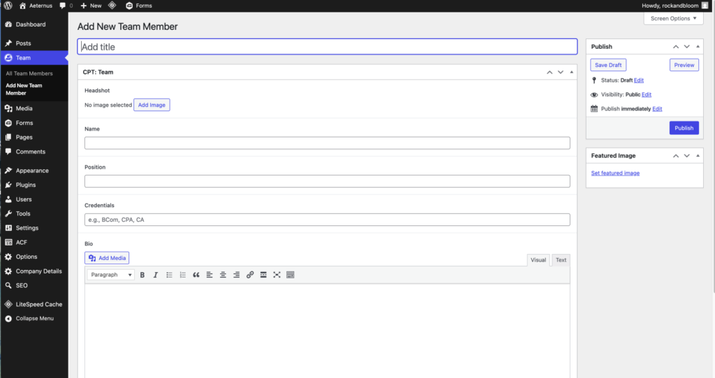 To create a new post, select Add New Team Member.