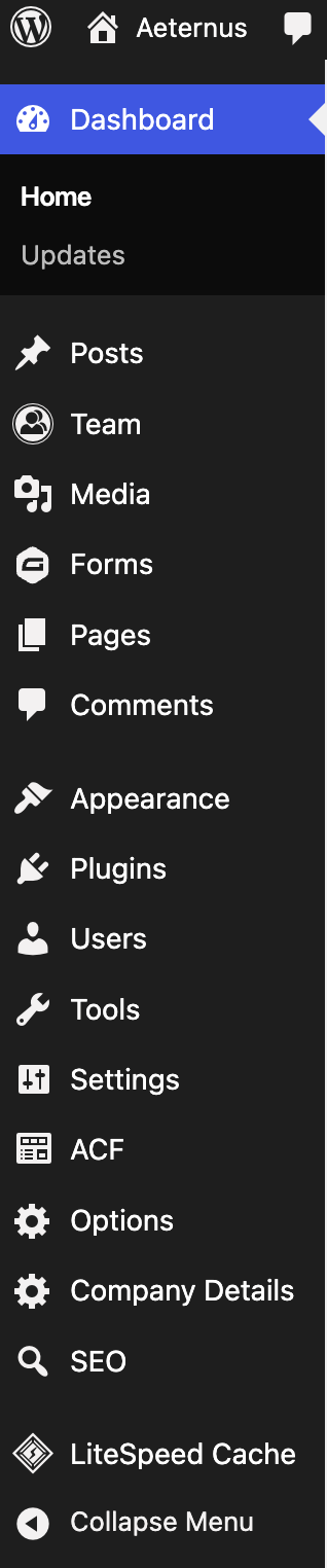 The WordPress Dashboard & Left Hand Menu