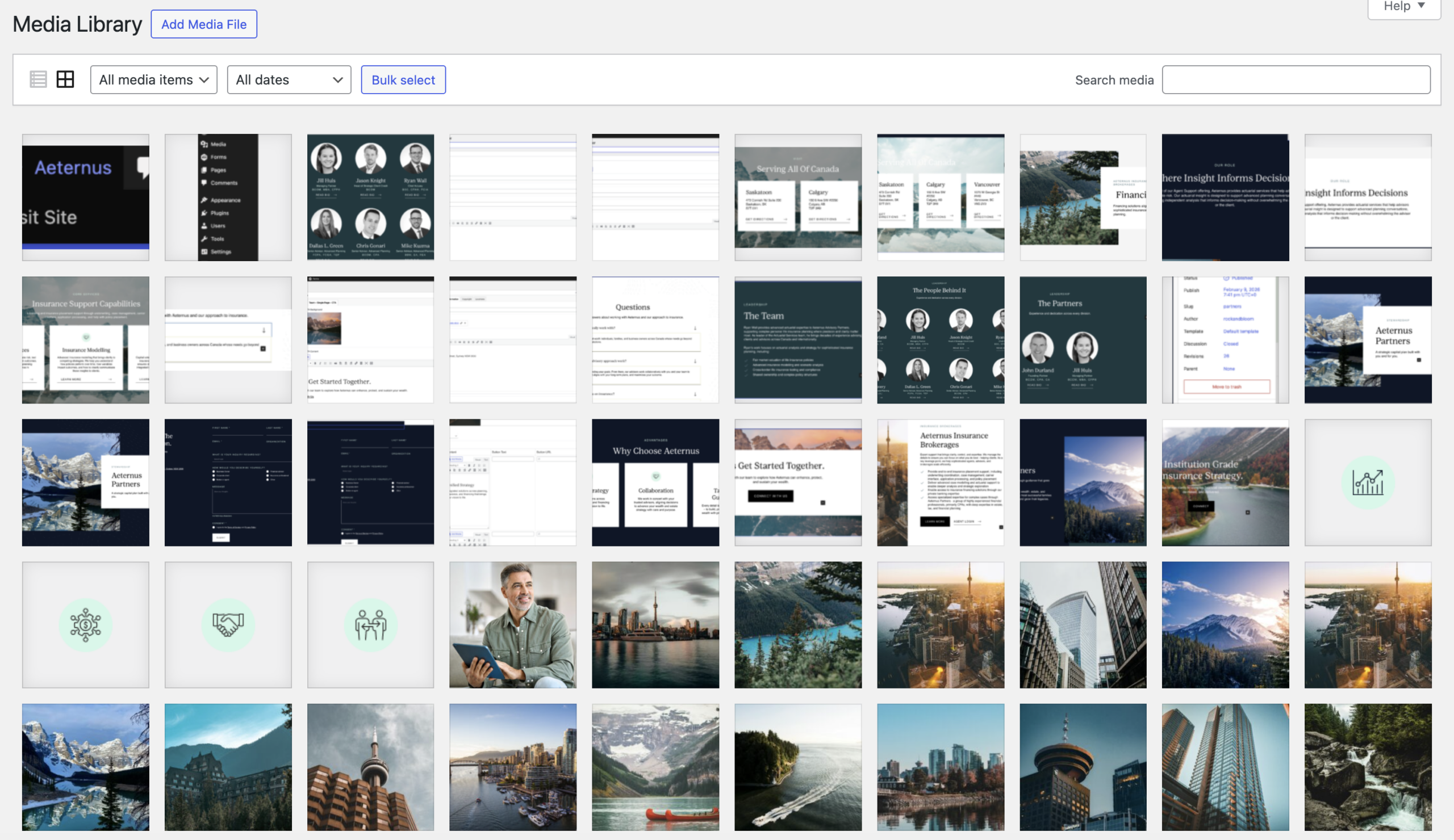 The Media Library tab shows the images that are already on the website.